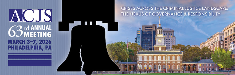 Join us for the ACJS 63rd Annual Meeting, March 3 - 7, 2026, at the Philadelphia Marriott Downtown Hotel, Philadelphia, PA. ACJS President Dr. Stephanie Mizrahi is excited to bring you a content-rich program featuring over 300 educational sessions, special events, and workshops, all under the theme “Crises Across the Criminal Justice Landscape: The Nexus of Governance and Responsibility."